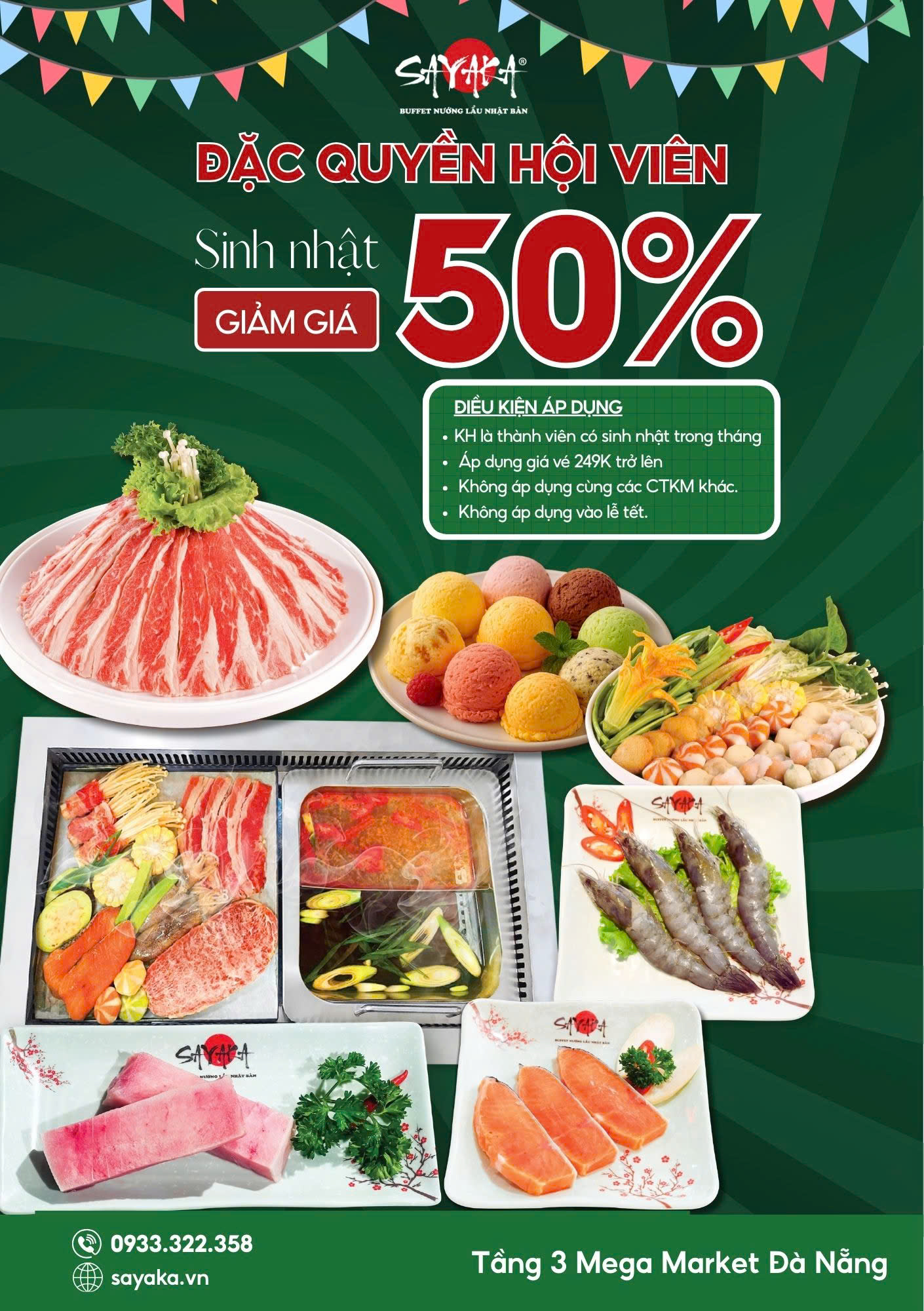 Với không gian rộng rãi, gói buffet với hơn 80+ món nhúng, món nướng decor siêu xịn vô cùng thích hợp cho việc check-in, sống ảo nha. Ngoài ra SAYAKA còn có vô vàn ưu đãi cực hấp dẫn dành đến cho bạn và gia đình khi đến với chúng mình...